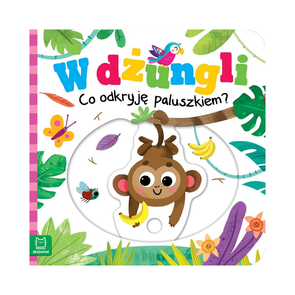 Jaki ptak ukrył się wśród liści? Co wykluło się z jaja? Jak bawi się leniwiec? Wystarczy przyłożyć paluszek do kółeczka na ruchomych elementach i poruszać nimi – wówczas odkrywają się schowane części ilustracji i znajdujemy odpowiedzi na pytania. Dzieci uwielbiają zabawę książkami z ruchomymi elementami – to nie tylko miło spędzony czas, ale i bardzo pożytecznie: dziecko ćwiczy motorykę małą oraz rozwija wyobraźnię. W książce znajdują się ilustracje: małpki, papug, jaguara, leniwców, lemura, kameleona, żabek oraz węży. Zabawne wierszyki dopasowane do ilustracji są dodatkową atrakcją tej ciekawej książeczki. Poruszaj ruchomymi obrazkami, słuchaj zabawnych wierszyków i baw się z bohaterami tej książeczki. Seria "Co odkryję paluszkiem" to doskonała sensoryczna zabawa dla najmłodszych.